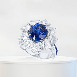 Natural Vivid Blue Sapphire Ring 21.13 Ct. TW, Cushion shape, SSEF Certified