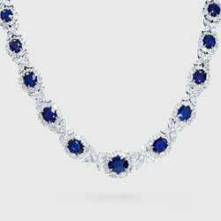 שרשרת ספיר בורמה כחול מלכותי טבעי ויהלומים 17.34 קראט (33.03 קראט TW), 26615505, לא מחוממת