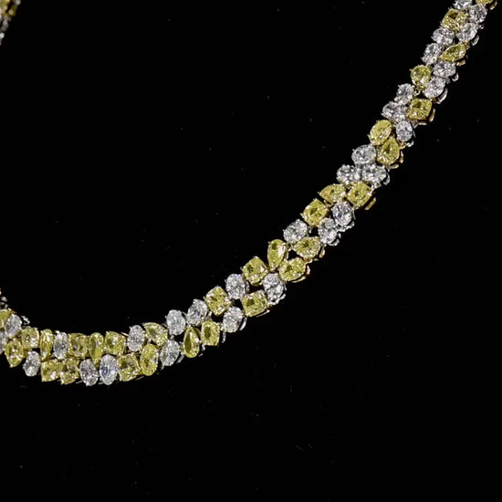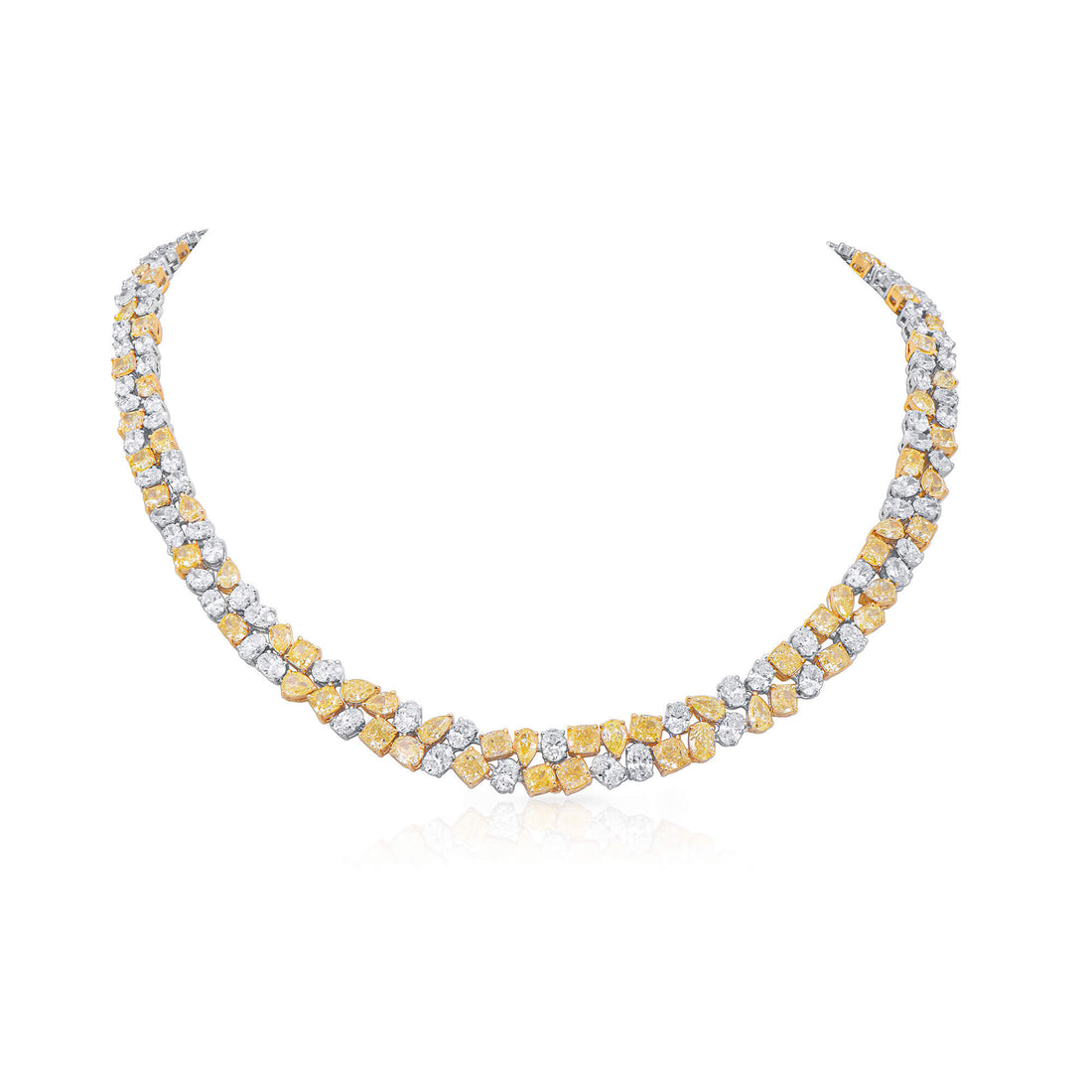 Fancy Yellow And White Diamond Necklace 18K White Gold, 41.83 Ct. TW, Mix shape