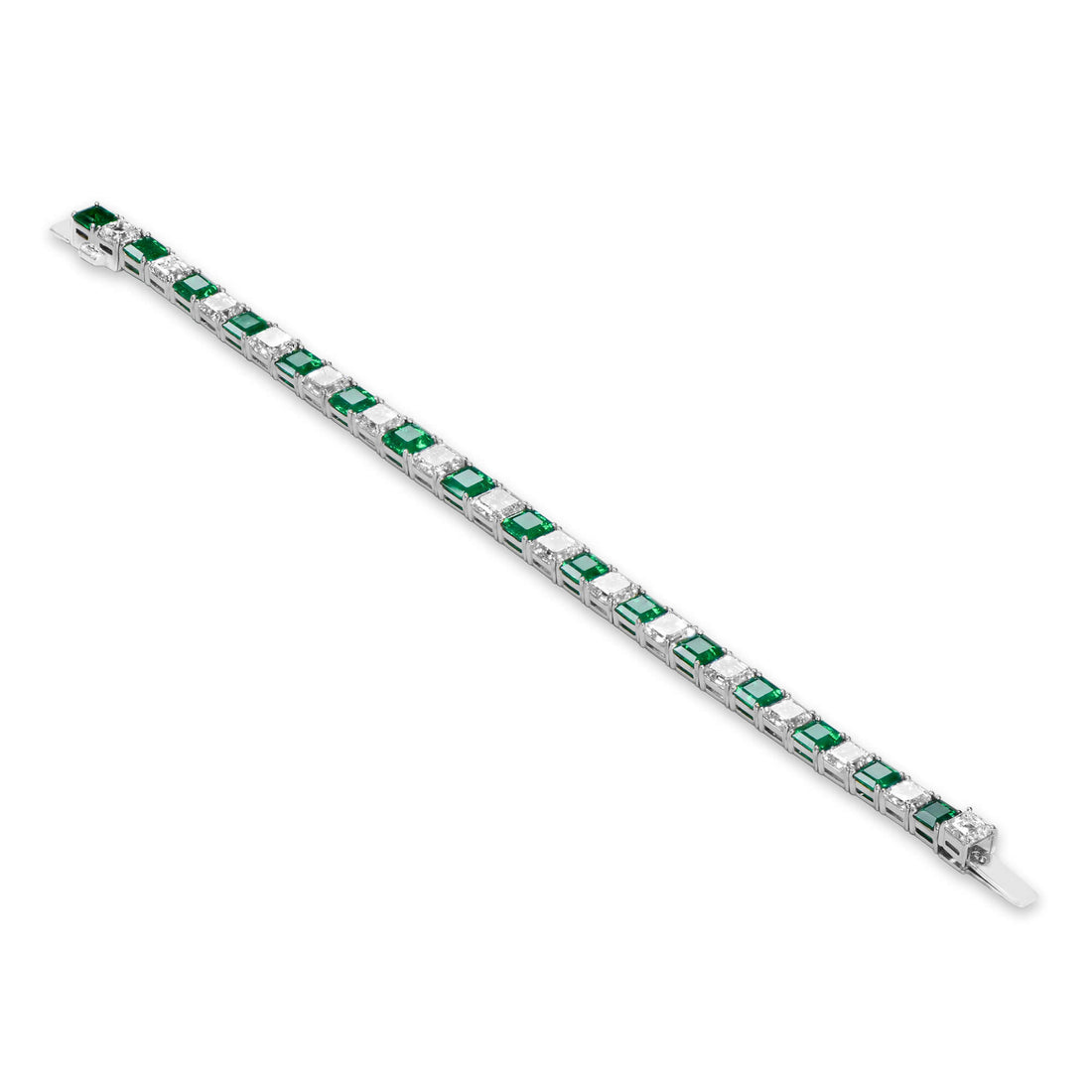 Natural Colombian Emerald And Diamond Bracelet 18K White Gold, 22.66 Ct. TW