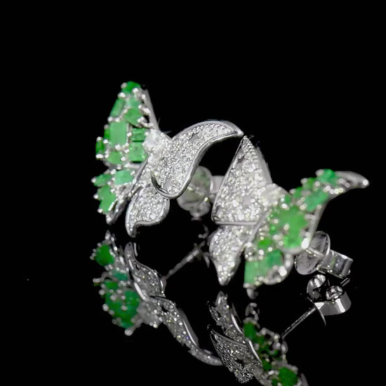 Natural Emerald And Diamond Butterfly Earrings