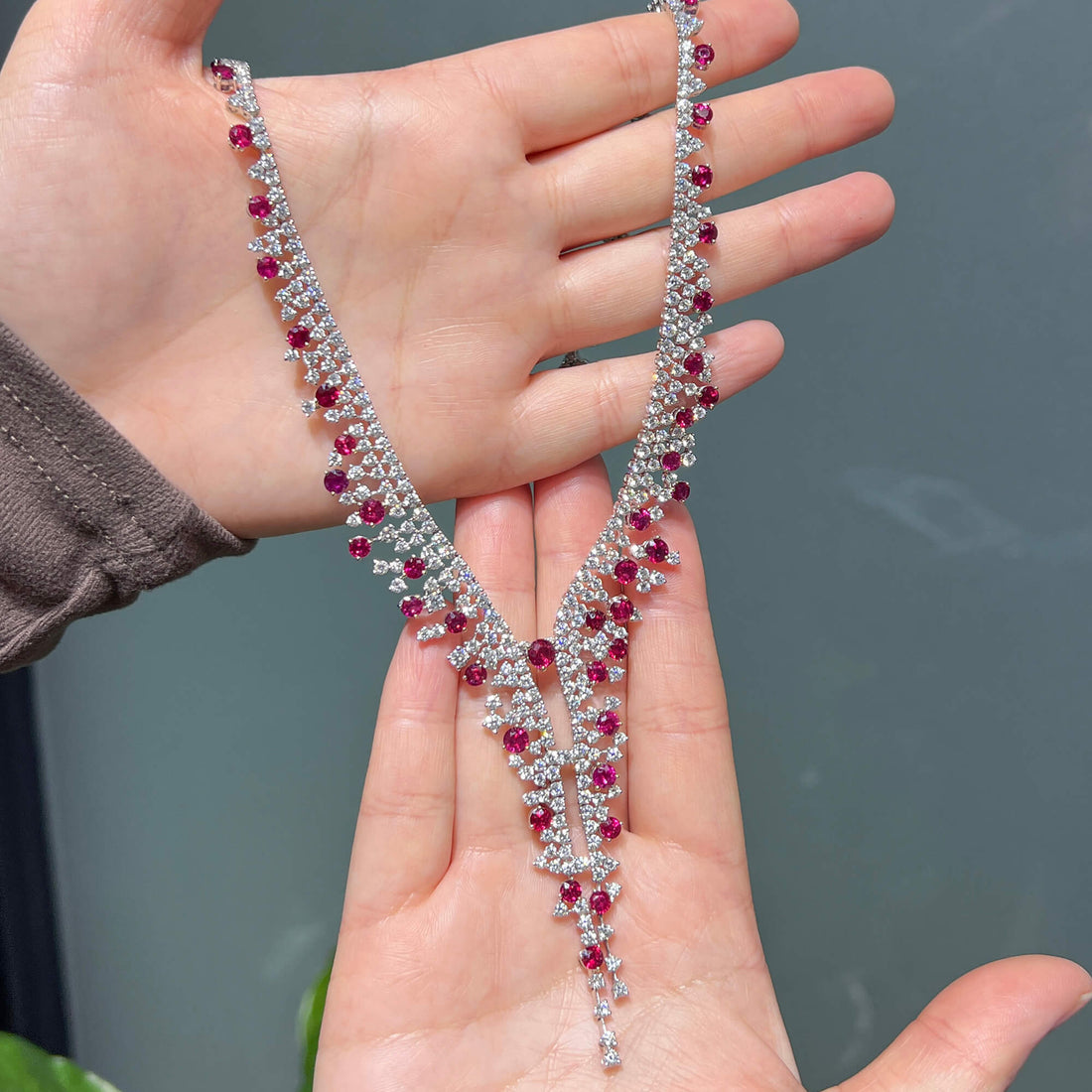 Natural Ruby And Diamond Necklace 18K White Gold, 31.14 Ct. TW