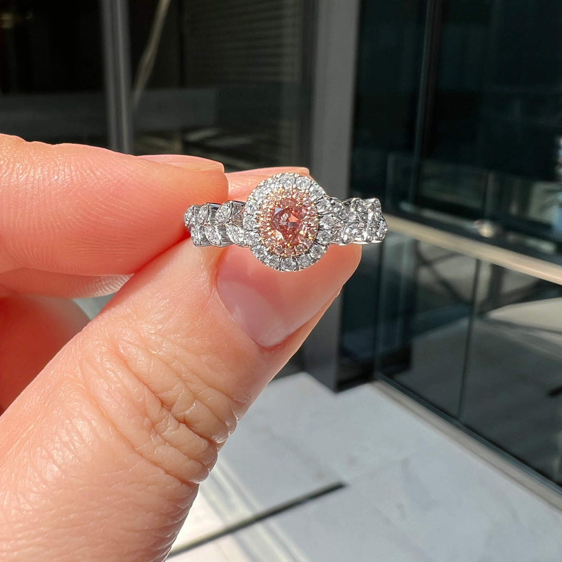 Natural Fancy Brownish Orangy Pink Diamond Halo Ring