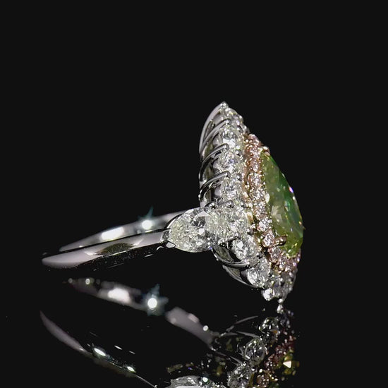 Fancy Grayish Greenish Yellow Diamond Ring, 3.84 Ct. TW, Pear shape, GIA Certified