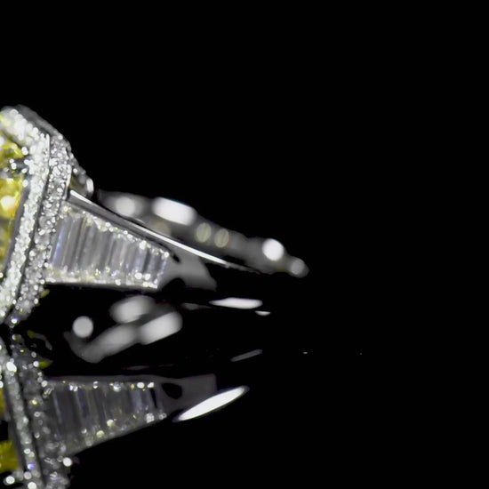 Natural Fancy Light Yellow Diamond Halo Ring 18K White Gold, Radiant Shape, 6.47 Ct. TW