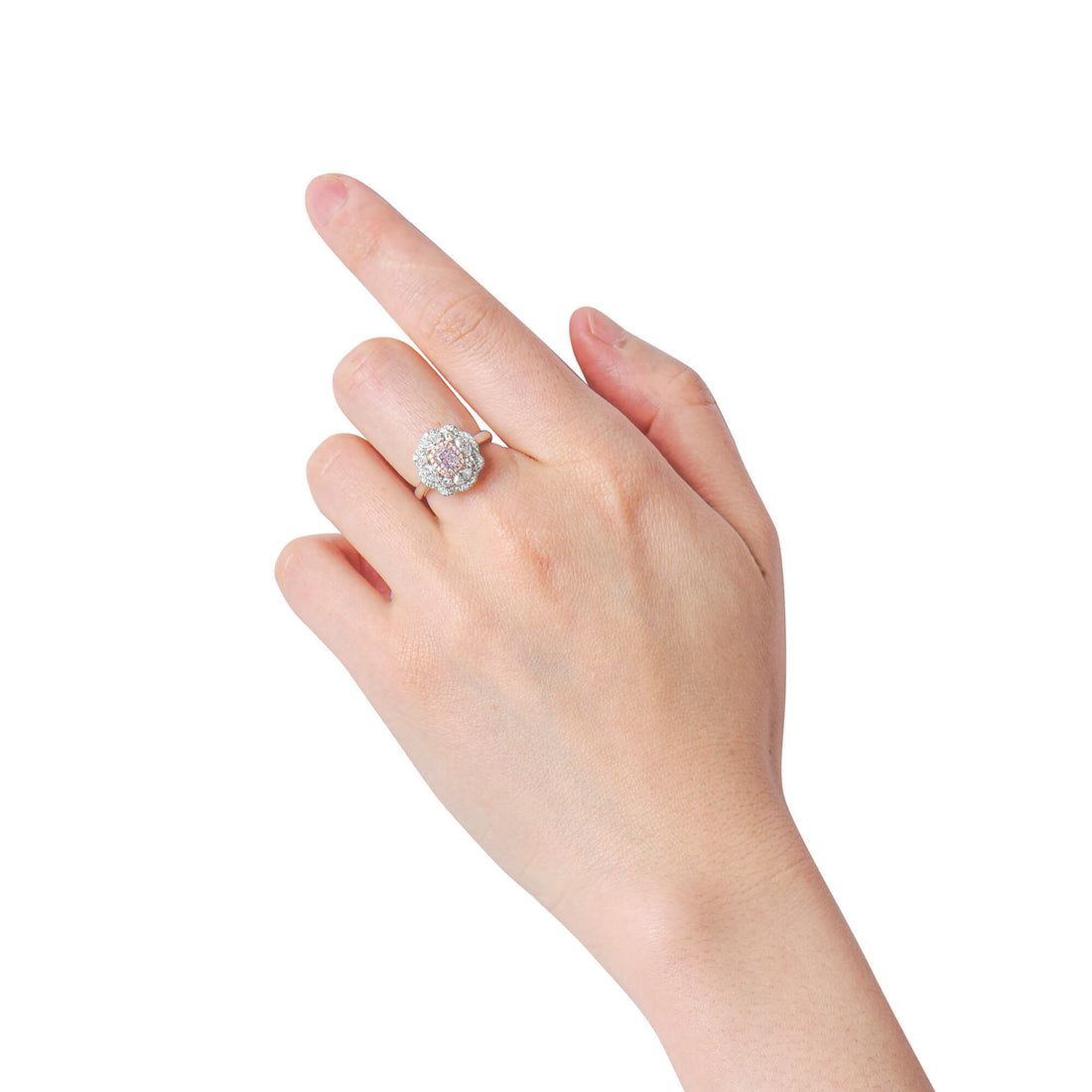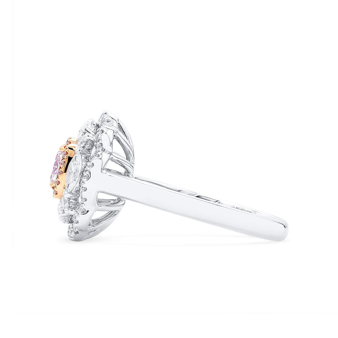Natural Light Pink Diamond Halo Ring 18K White & Rose Gold, Cushion Shape, 1.33 Ct. TW