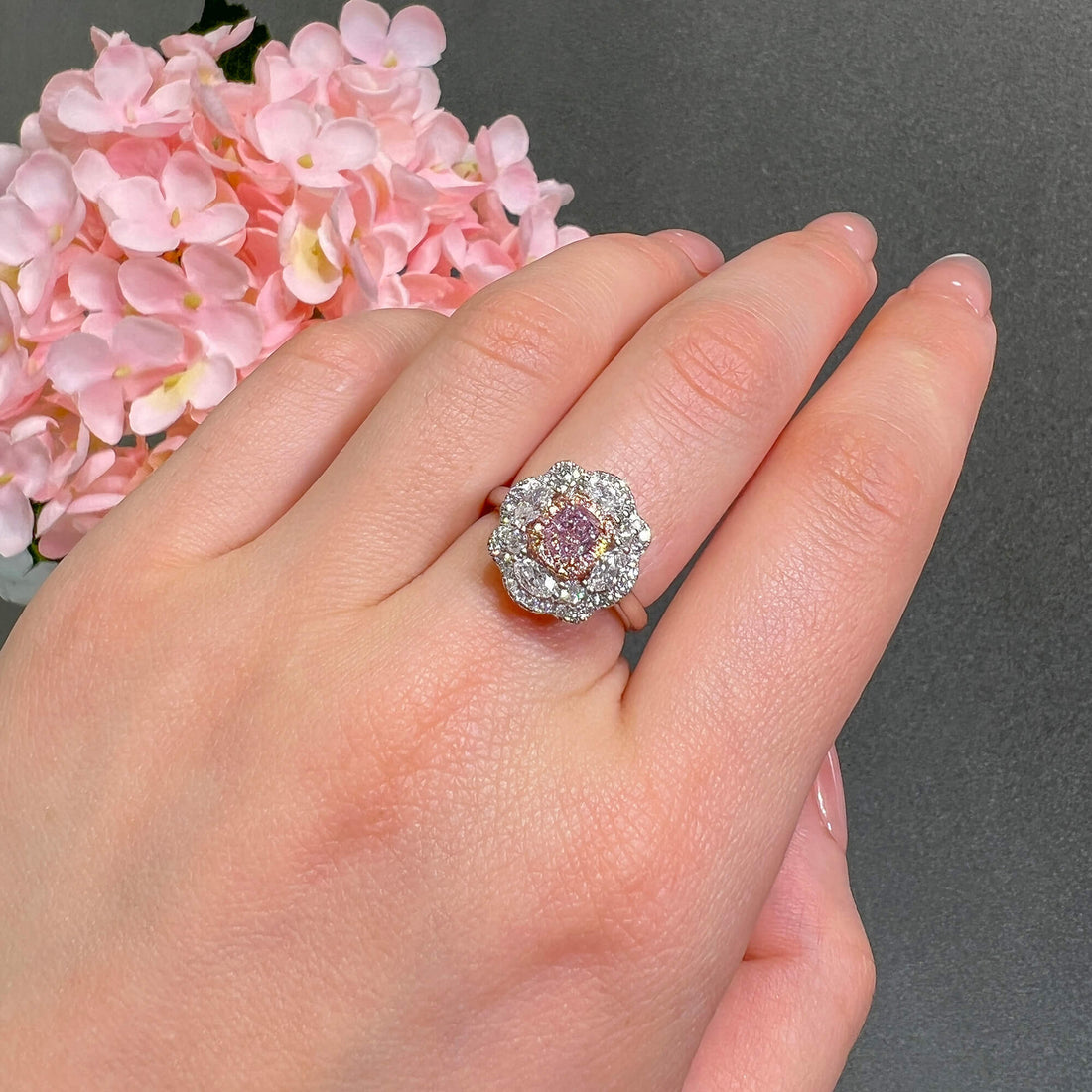Light Pink Diamond Ring, 1.33 Ct. TW, Cushion shape, GIA Certified