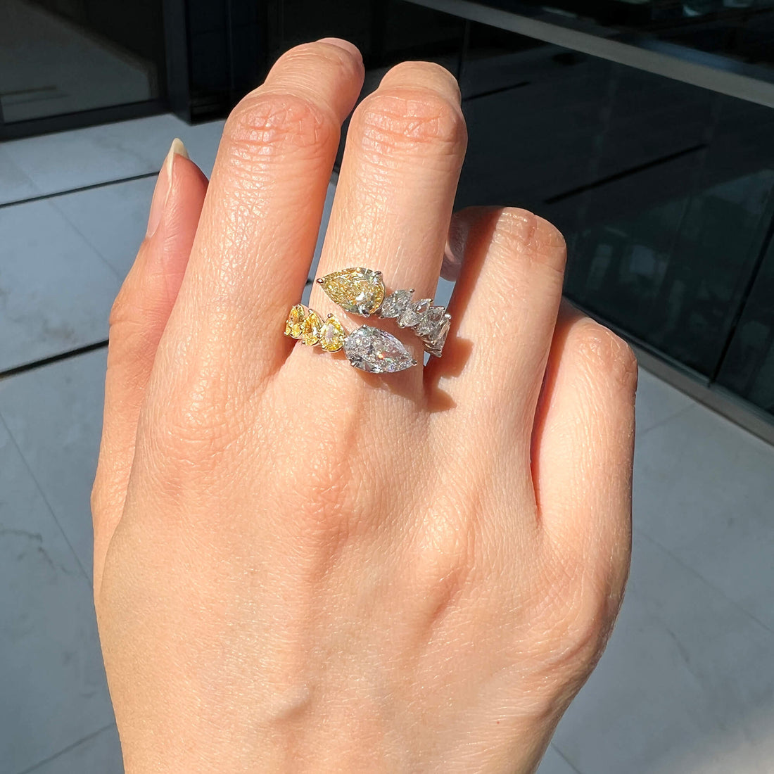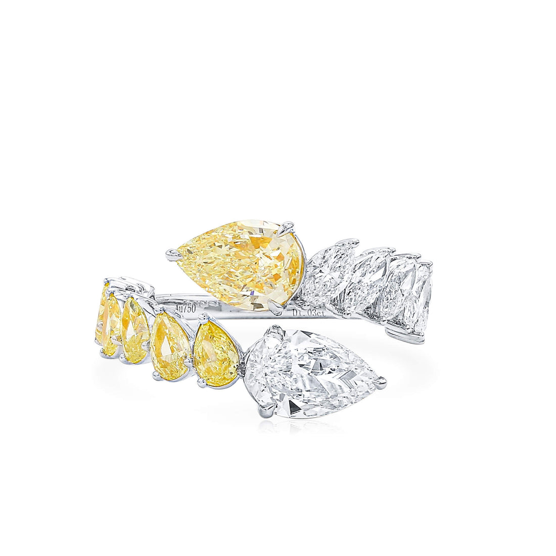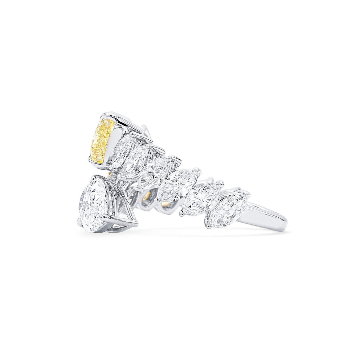 Natural Yellow and White Diamond Ring 18K White Gold, 4.59 Ct. TW