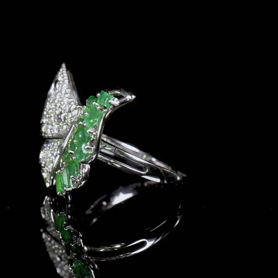 Natural Emerald And Diamond Butterfly Ring