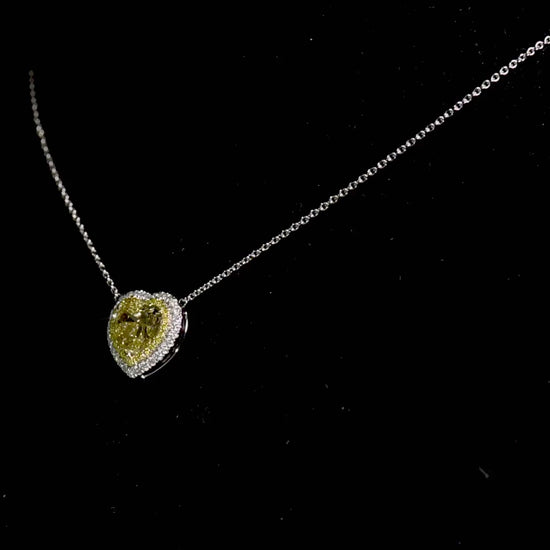 Natural Fancy Deep Yellow Diamond Pendant 18K White Gold, Heart Shape, 3.91 Ct. TW