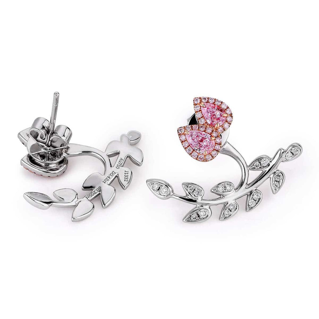 Natural Pink & White Diamond Cluster Earrings — 18K White Gold, Pear Shape, 1.20 Ct. TW