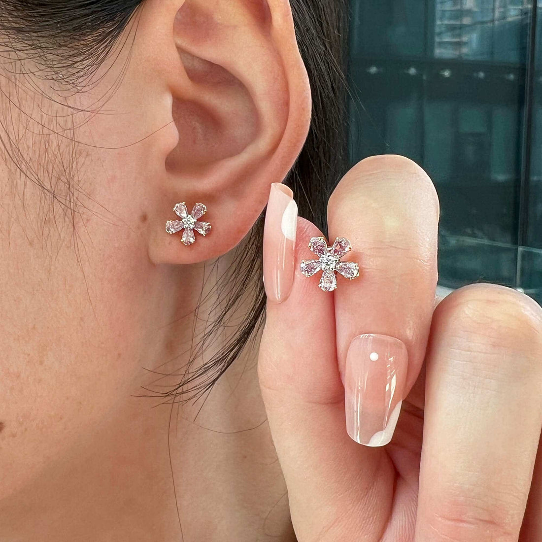 Natural Pink & White Diamond Flower Earrings