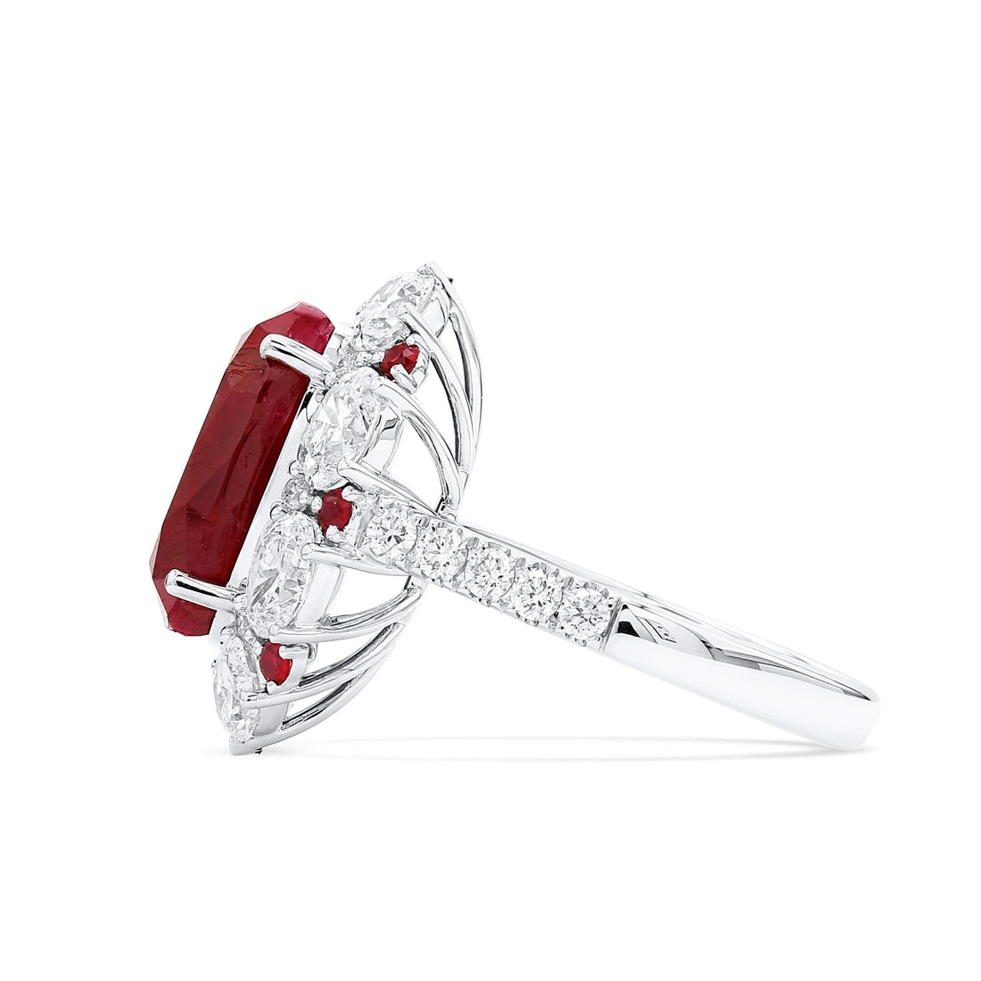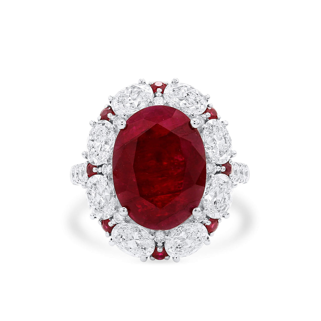 Natural Red Ruby Halo Ring 18K White Gold, Oval Shape, 12.31 Ct. TW