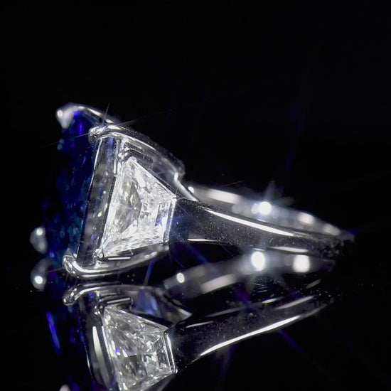 Natural Vivid Blue Sapphire Ring, 21.13 Ct. TW, Cushion shape, SSEF Certified