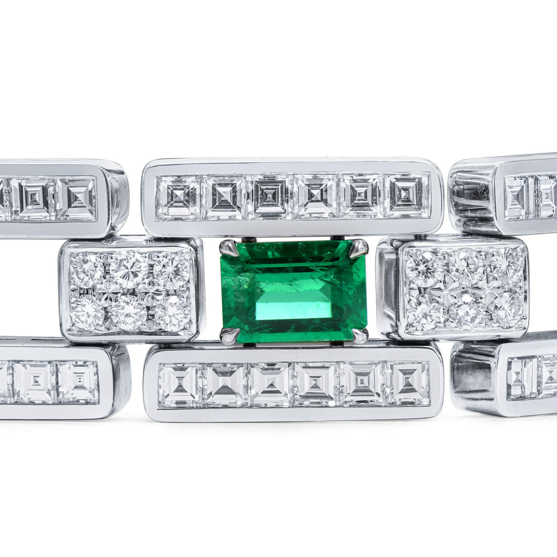 Natural Vivid Green Colombian Emerald Bracelet 18K White Gold, Emerald Shape, 17.82 Ct. TW