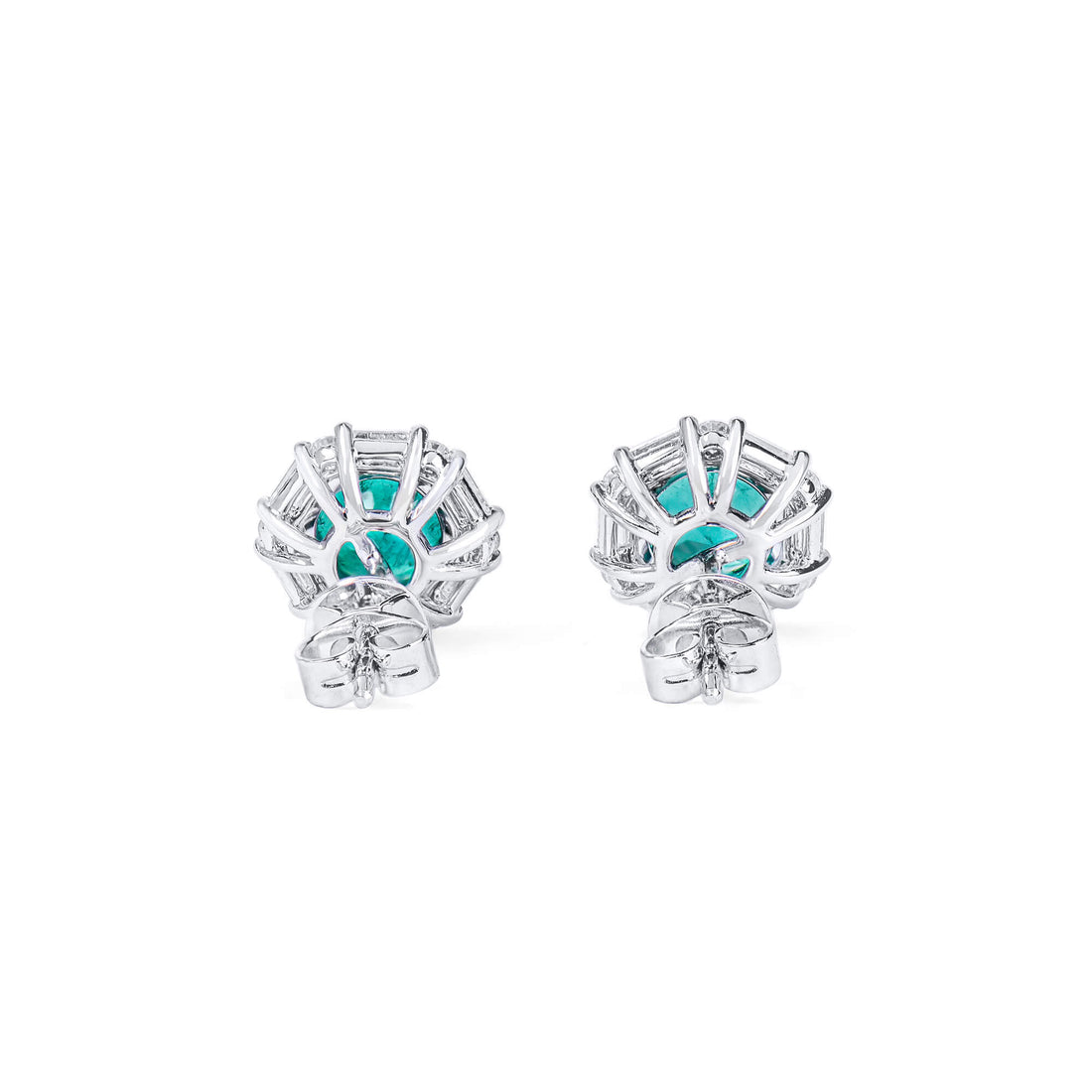 Natural Vivid Green Colombian Emerald Studs Earrings 18K White Gold, Round Shape, 2.34 Ct. TW, Not Treated
