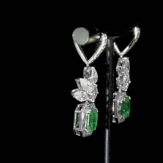 Natural Vivid Green Colombian Emerald and White Diamond Drop Earrings