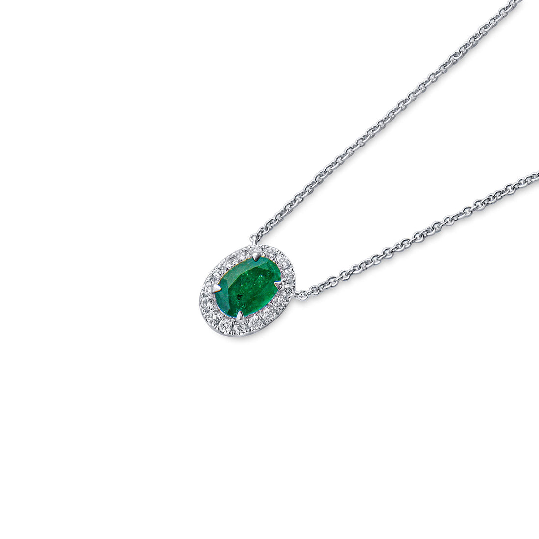 Natural Green Colombian Emerald Necklace 18K White Gold, Oval Shape, 0.72 Ct. TW
