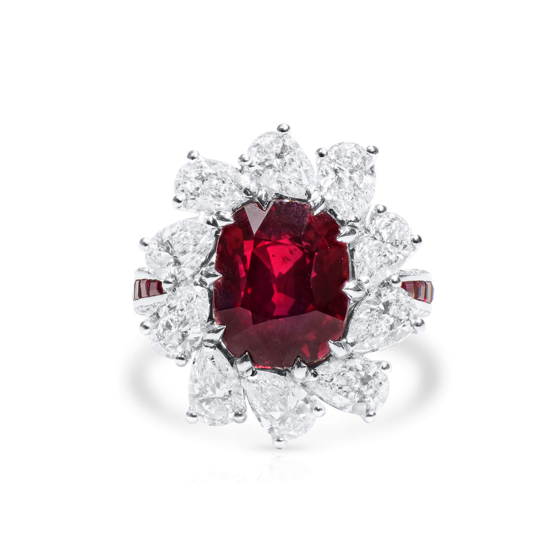 Natural Vivid Red Mozambique Ruby Ring 12.84 Ct. TW, Oval shape, GRS Certified