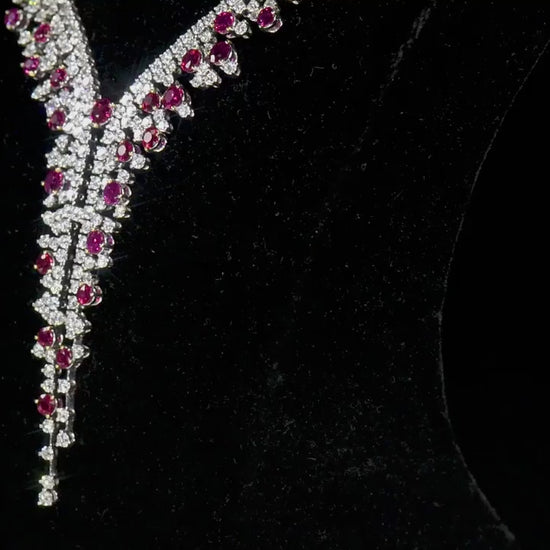 Natural Ruby And Diamond Necklace 18K White Gold, 31.14 Ct. TW