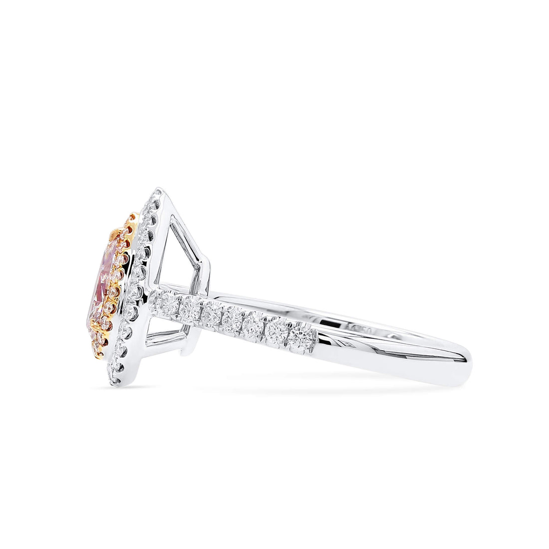 Natural Very Light Pink Diamond Halo Ring 18K White & Rose Gold, Pear Shape, 1.23 Ct. TW