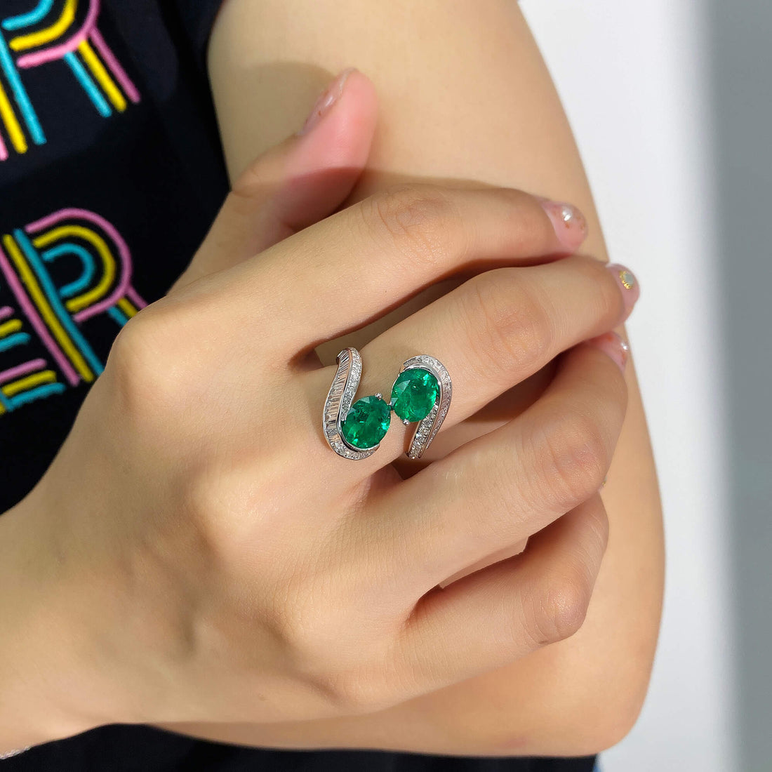 Natural Vivid Green Colombian Emerald Ring 18K White Gold, Oval Shape, 3.47 Ct. TW