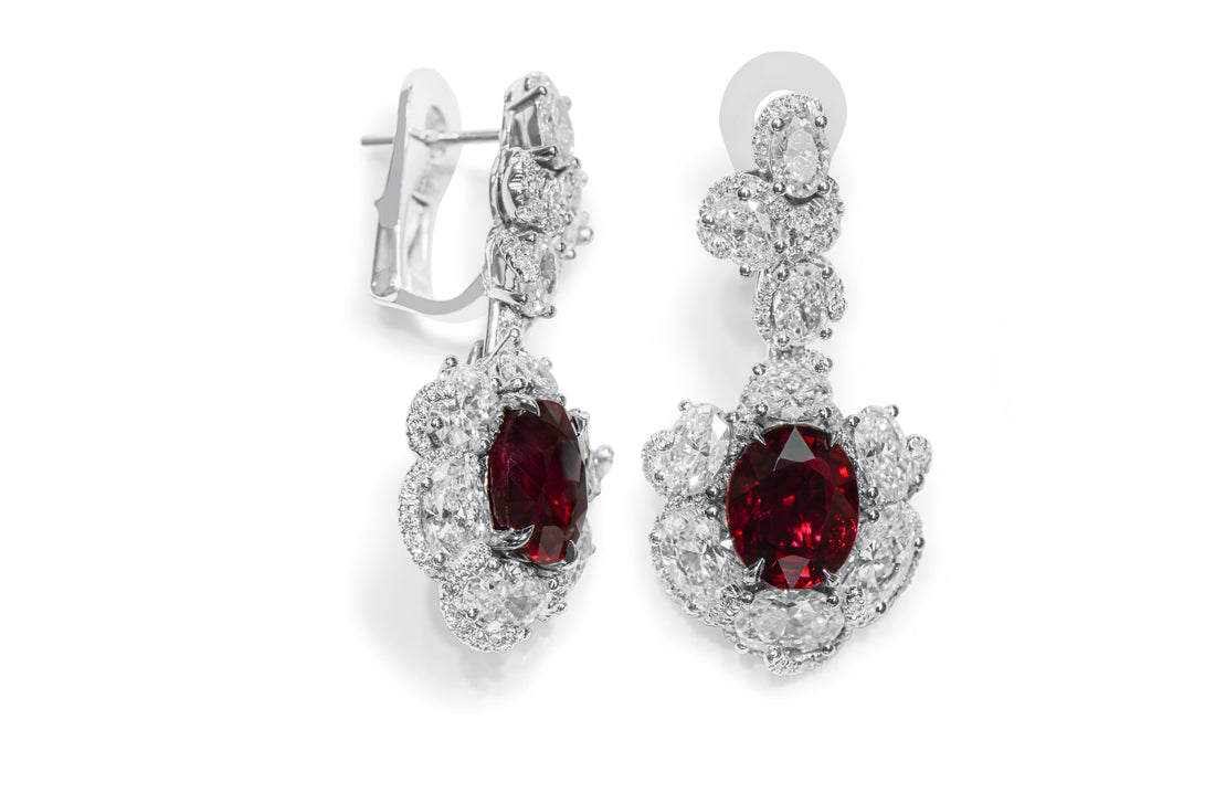 Vivid Red Ruby and Diamond Earrings, 6.07 Ct. (11.72 Ct. TW), Oval Shape, GRS2023-035913