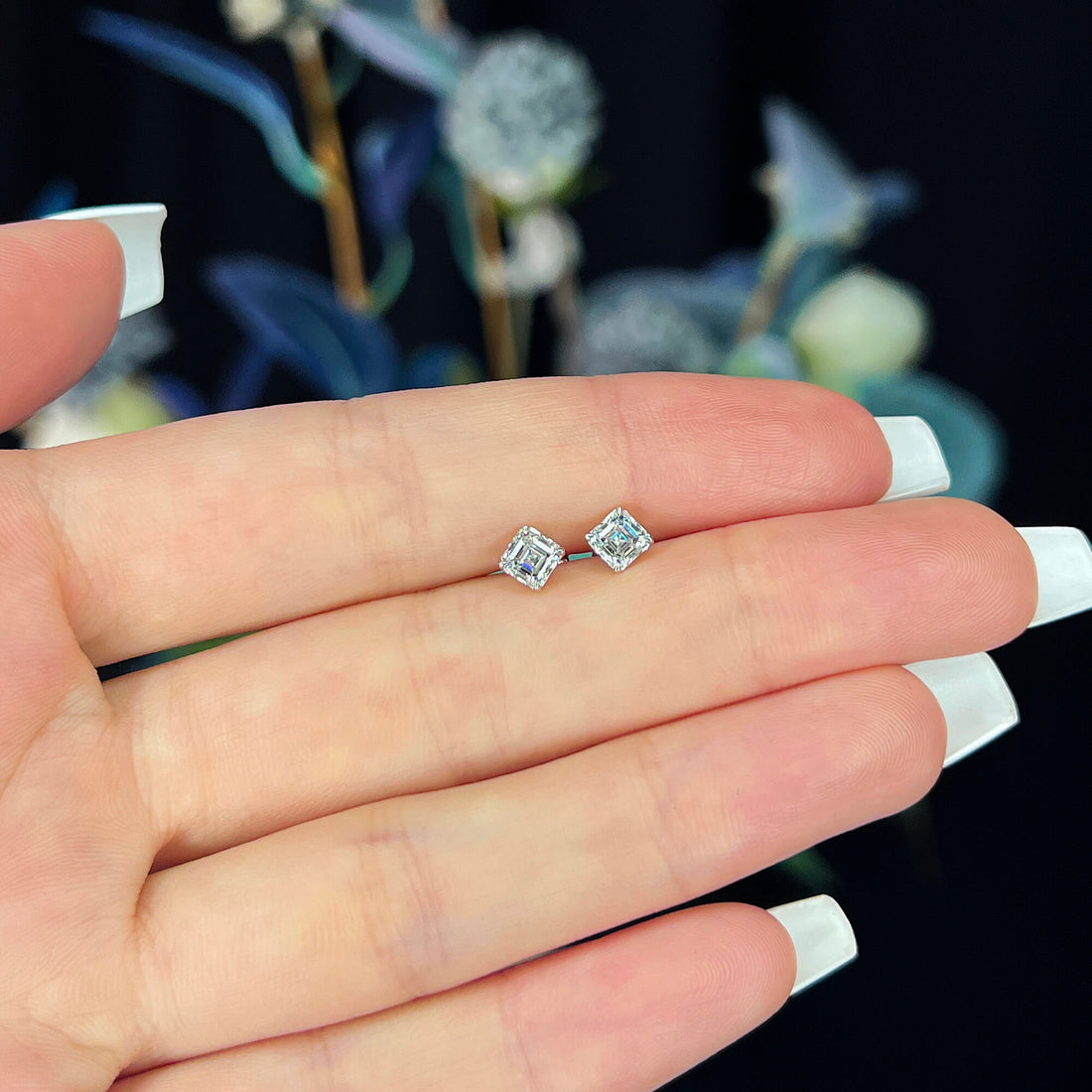 Natural Diamond Stud Earrings 18K White Gold, Asscher Shape, 1.00 Ct. TW