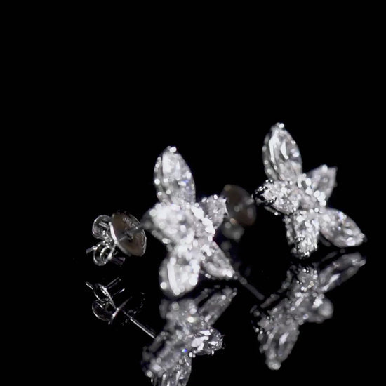 Natural Diamond Stud Earrings 18K White Gold, Marquise Shape, 2.38 Ct. TW