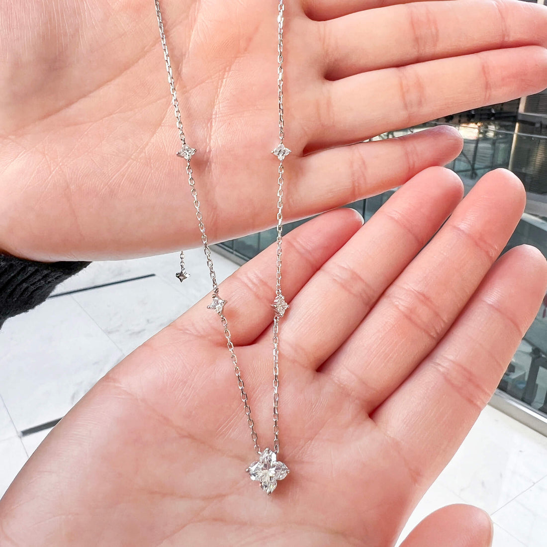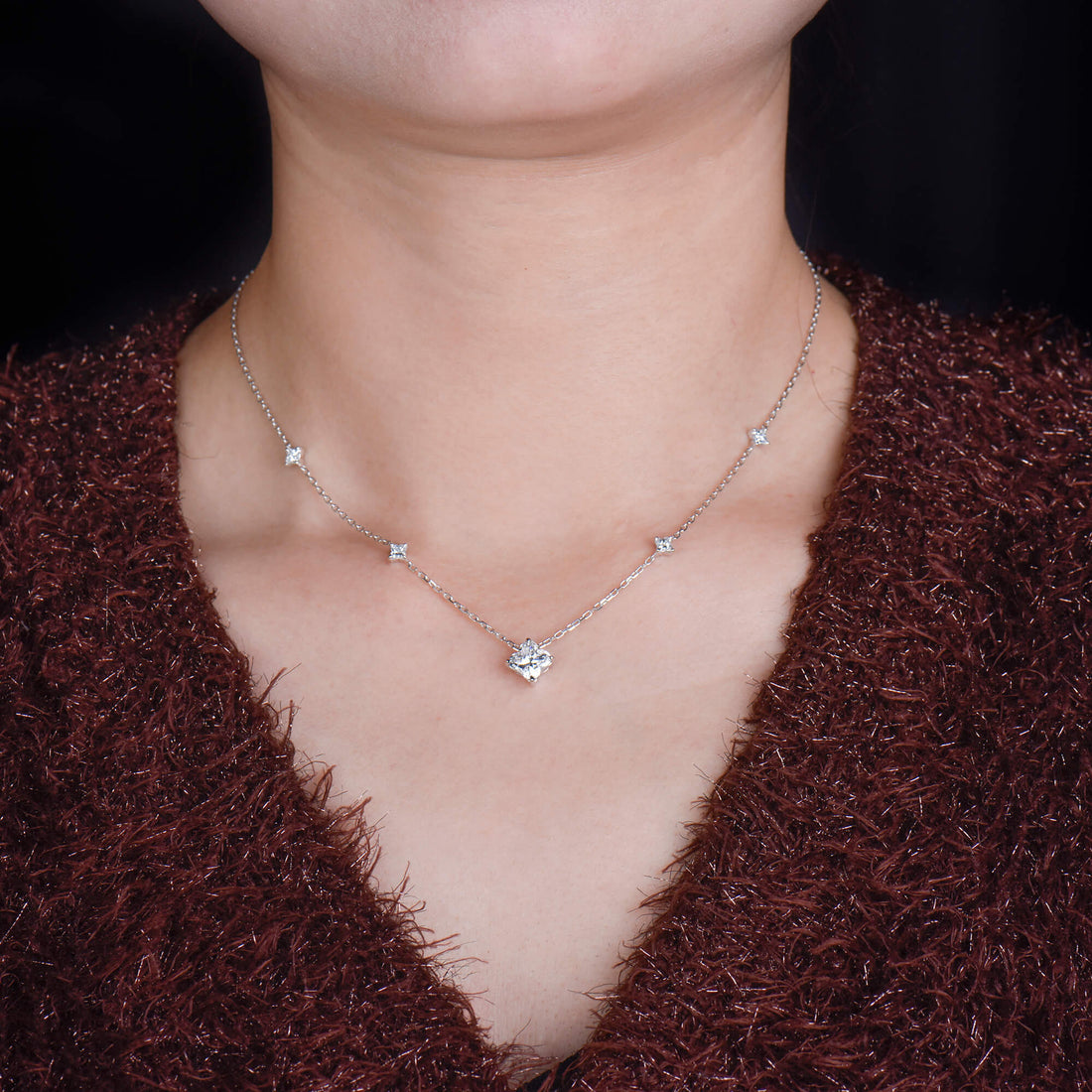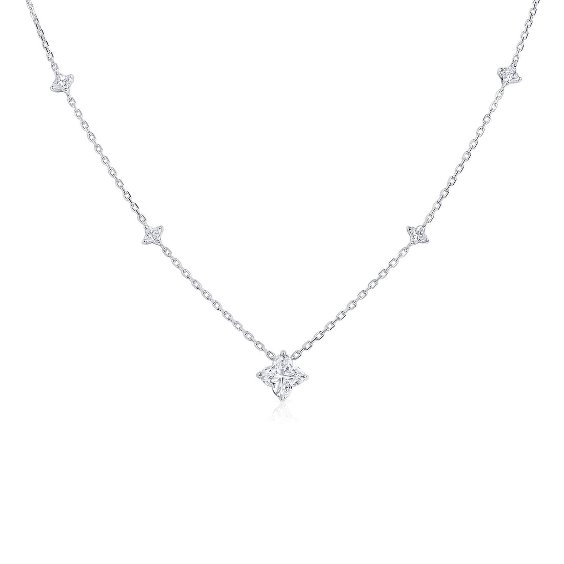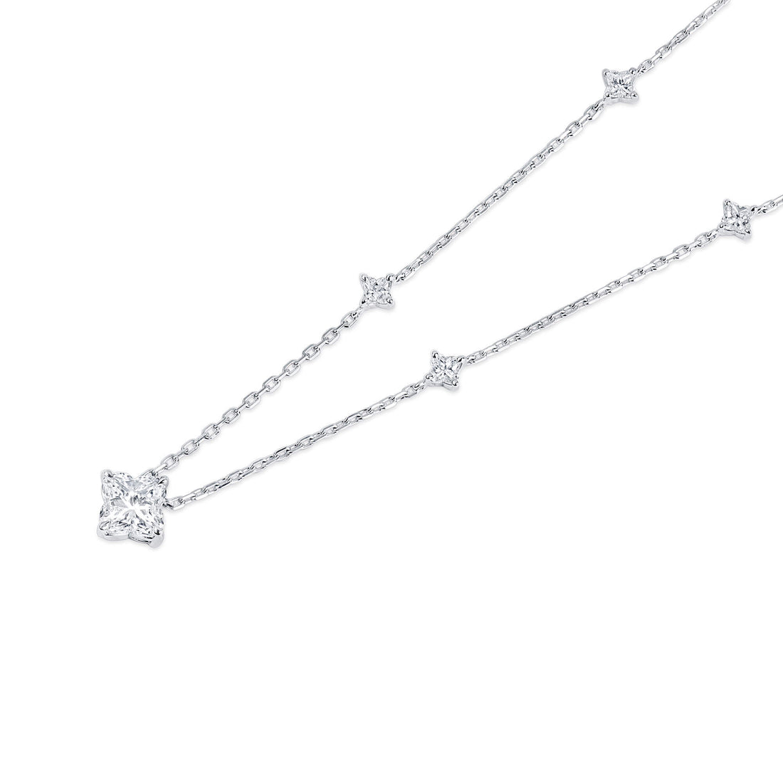 Natural Diamond Necklace 18K White Gold, Princess Shape, 2.67 Ct. TW