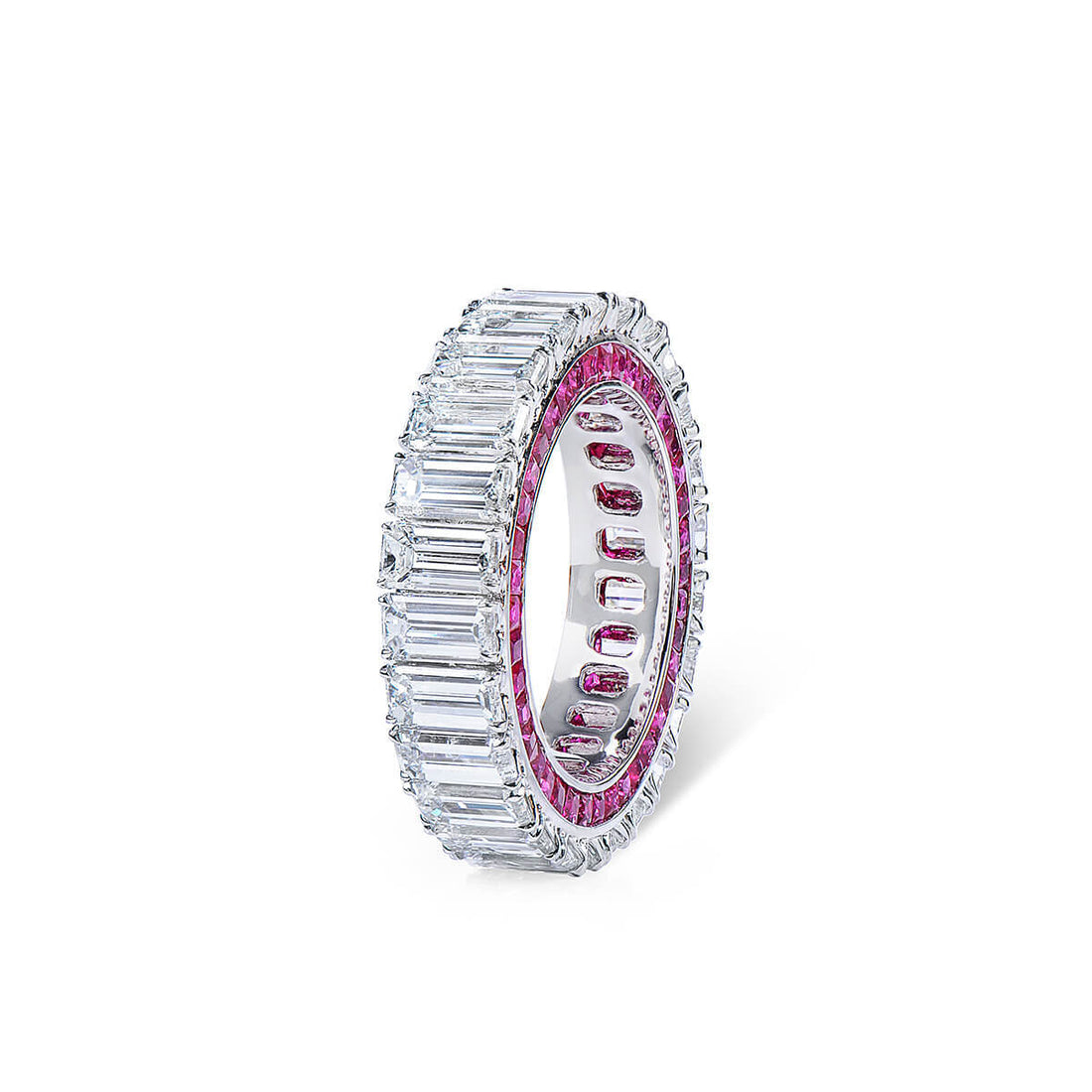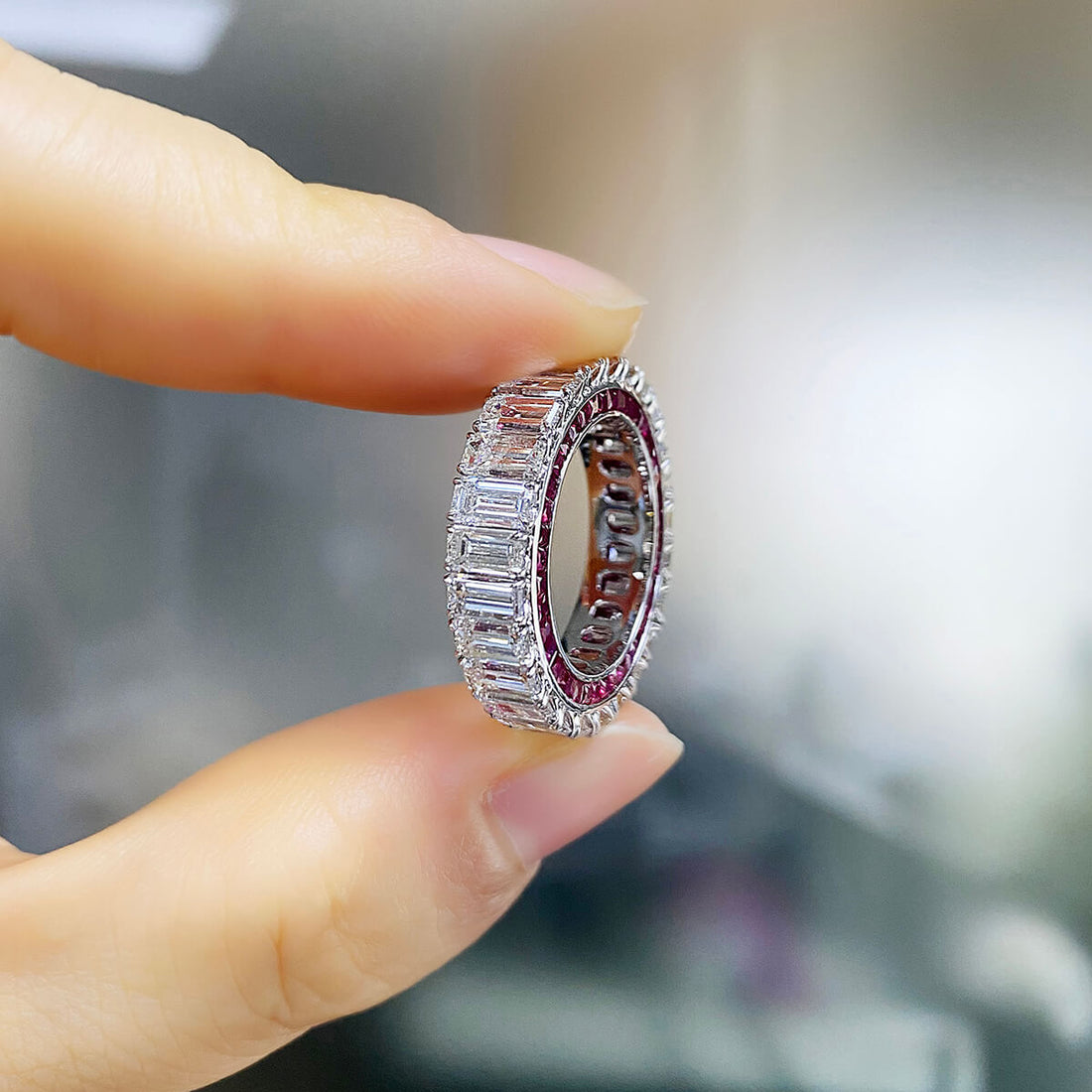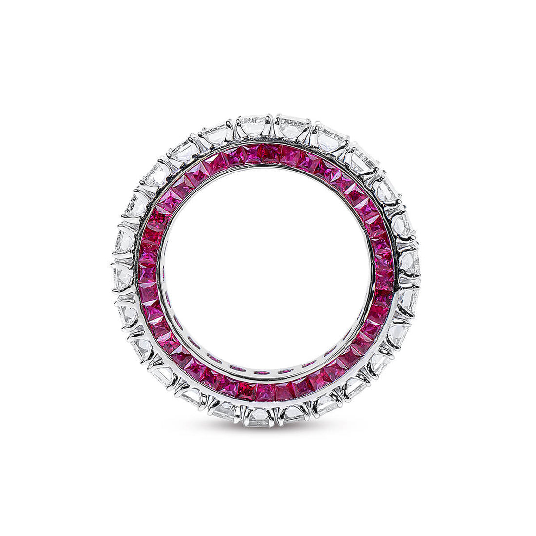 White Diamond & Ruby Eternity Band Ring, 6.74 Ct. (8.86 Ct. TW), Emerald Shape