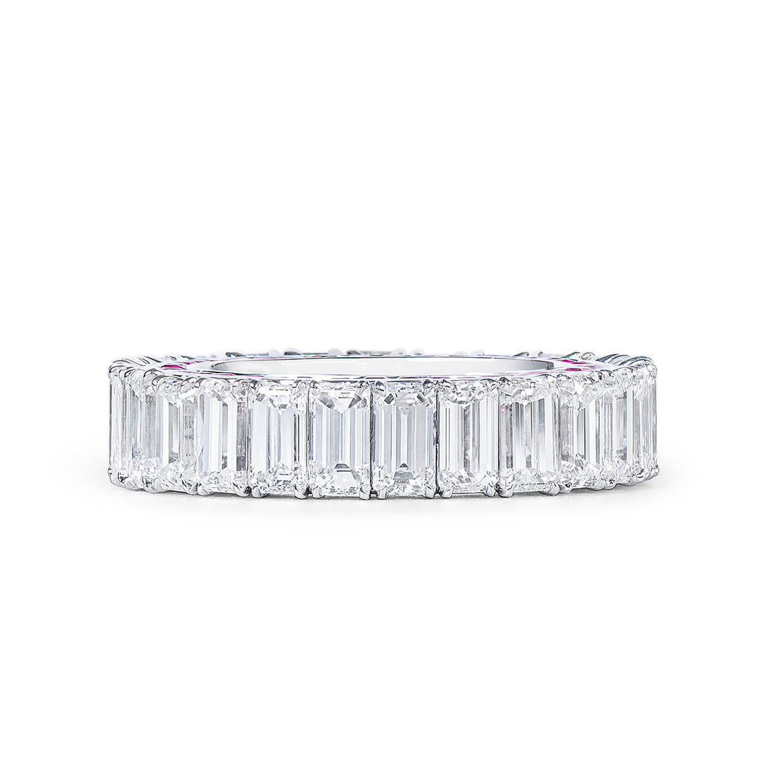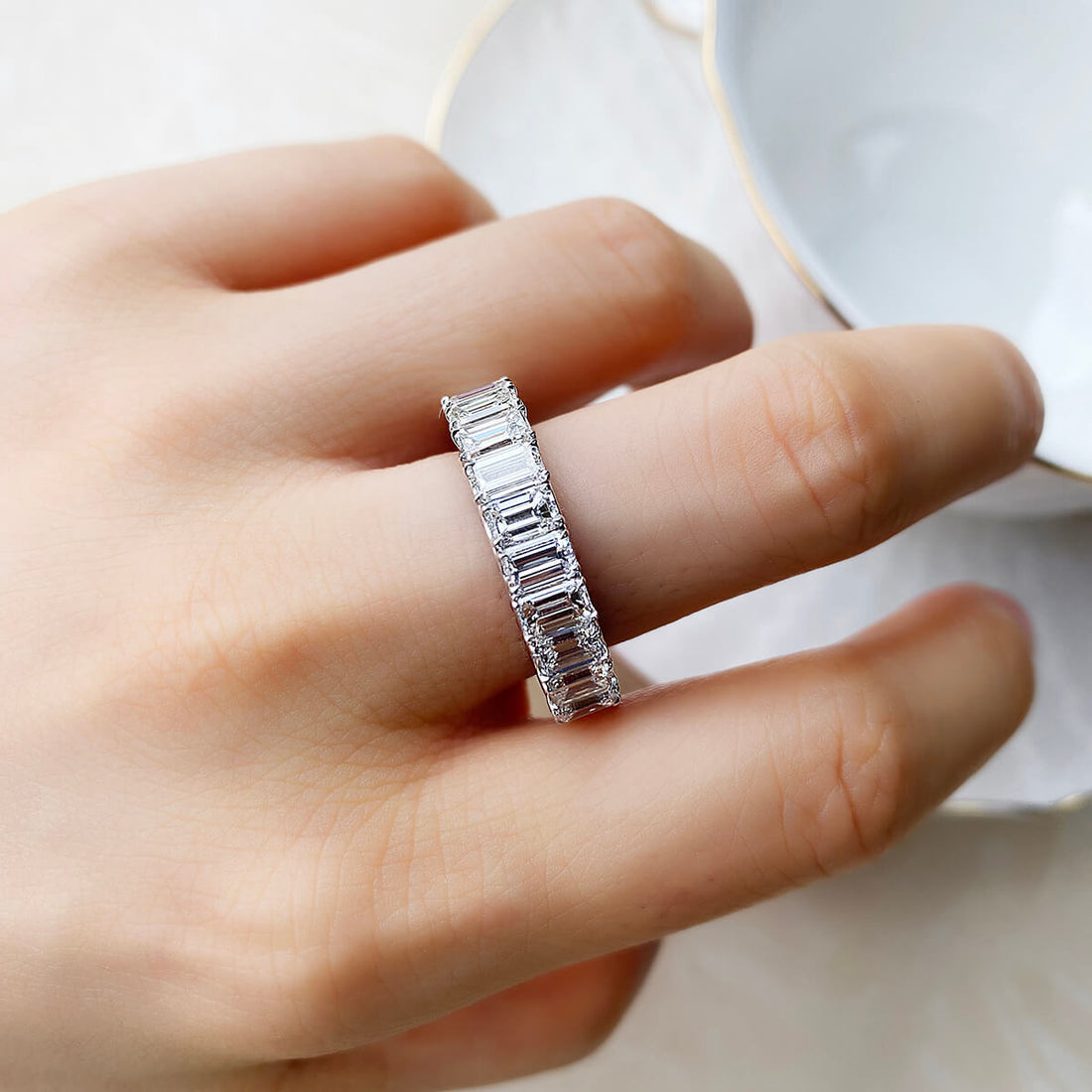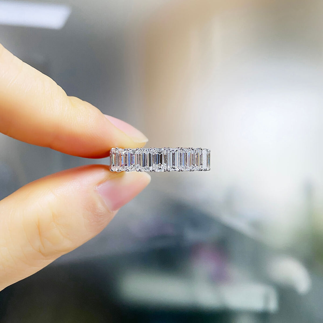 Natural Diamond Full Eternity Ring 18K White Gold, Emerald Shape, 8.86 Ct. TW