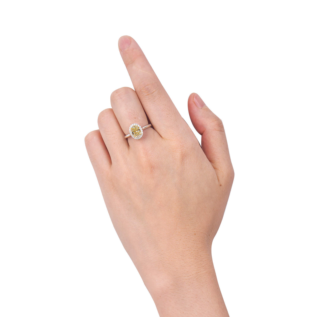 呈现奇妙黄钻戒指,1.71 克拉总重,椭圆形,GIA 认证: